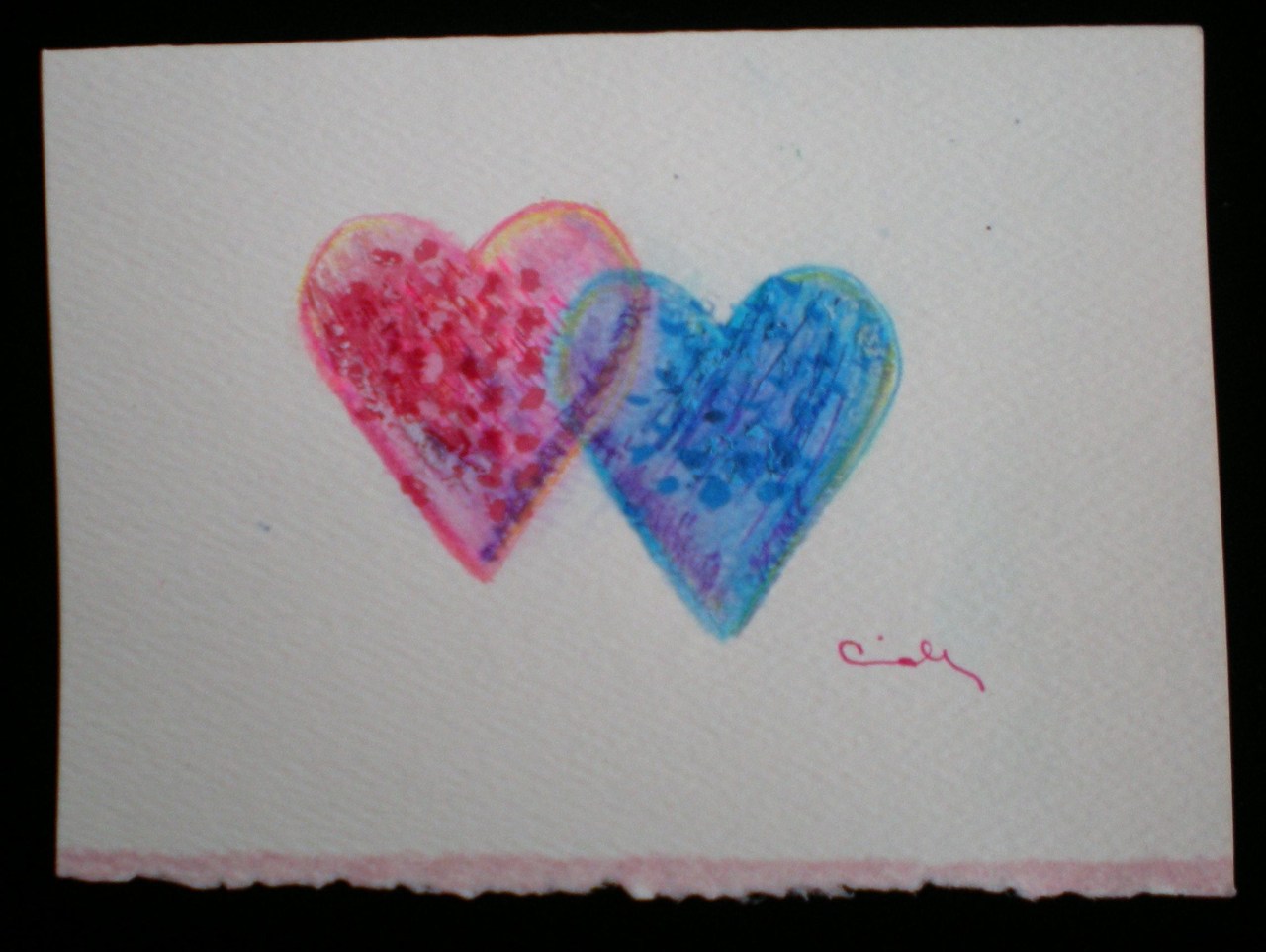 Blue & Pink Hearts on Paper Date: February 14, 2013Author: dandian3 Category: Framed, Hearts Post navigation ← Rainbow Hearts on Black and Red Gold Heart → Share this: Click to share on X (Opens in new window) X Click to share on Facebook (Opens in new window) Facebook Like Loading... Related